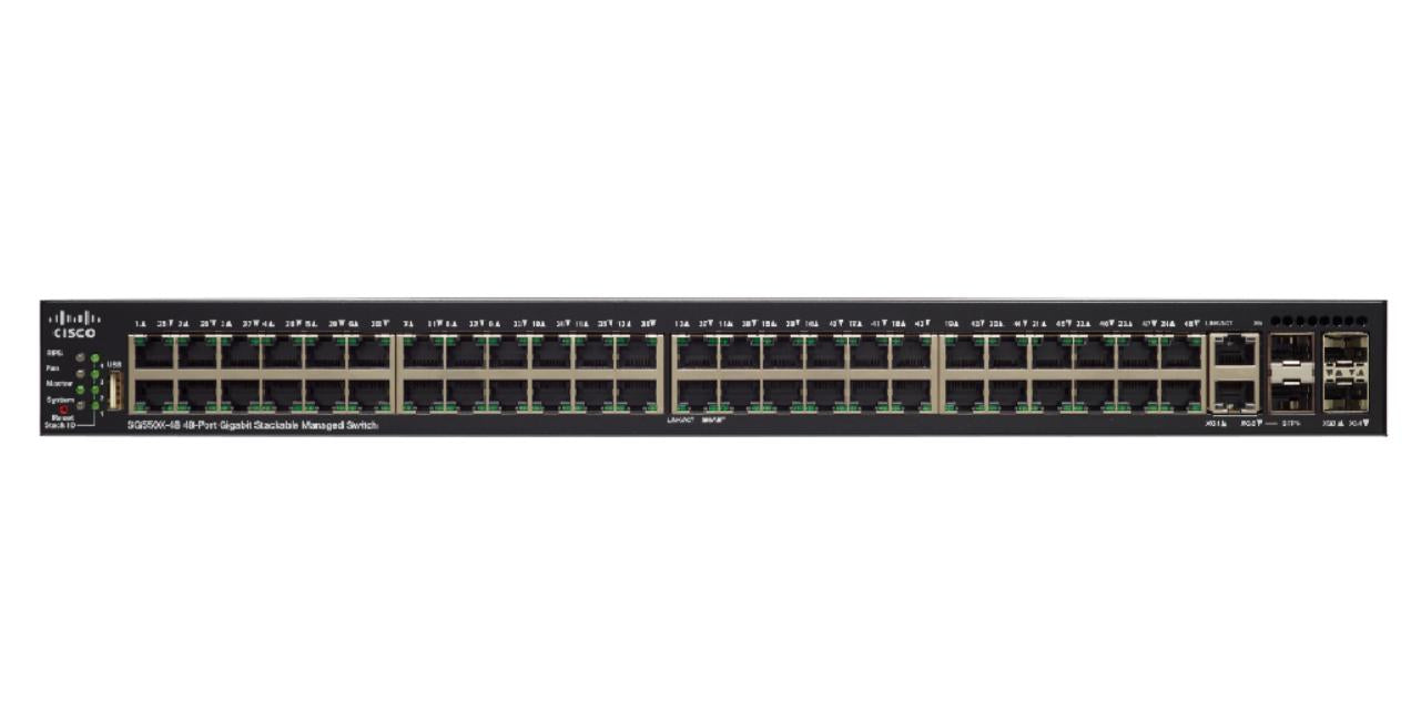 Cisco 550X Series SF550X-48P - Switch - L3 - Administered - 48 x 10/100 (PoE+) + 2 x combo SFP+ 10 Gigabit + 2 x SFP+ - rail mountable - PoE+ (382W)