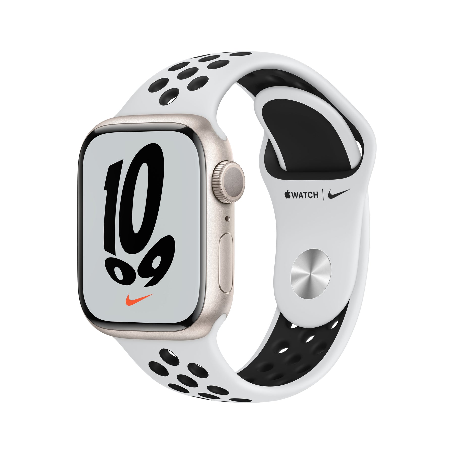 Apple Watch Nike Series 7 (GPS) - 41mm - Starry Aluminum - Smart Watch With Nike Sport Strap - Fluoroelastomer - Pure Platinum/Black - Band Size: S/M/L - 32GB - Wi-Fi, Bluetooth - 32 g