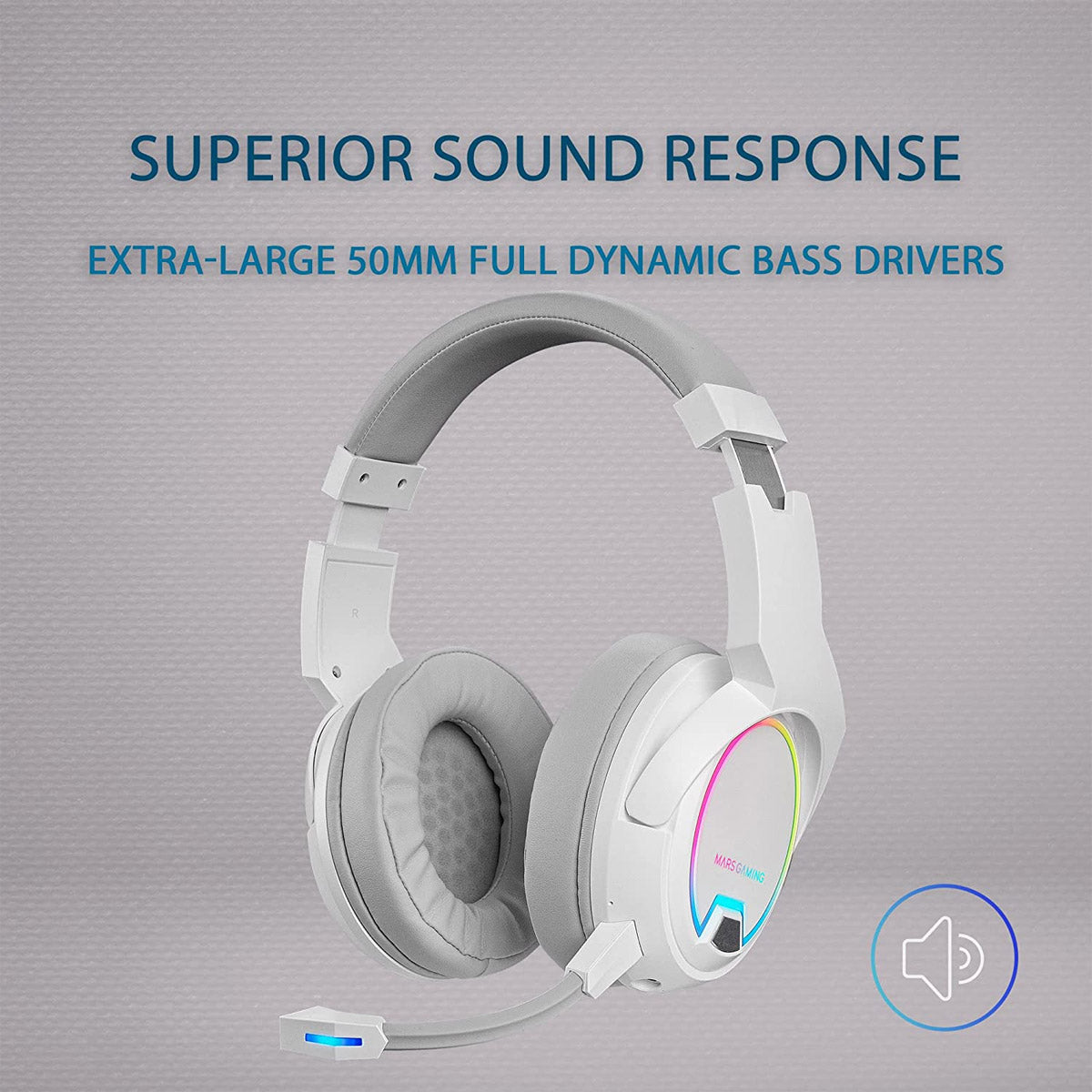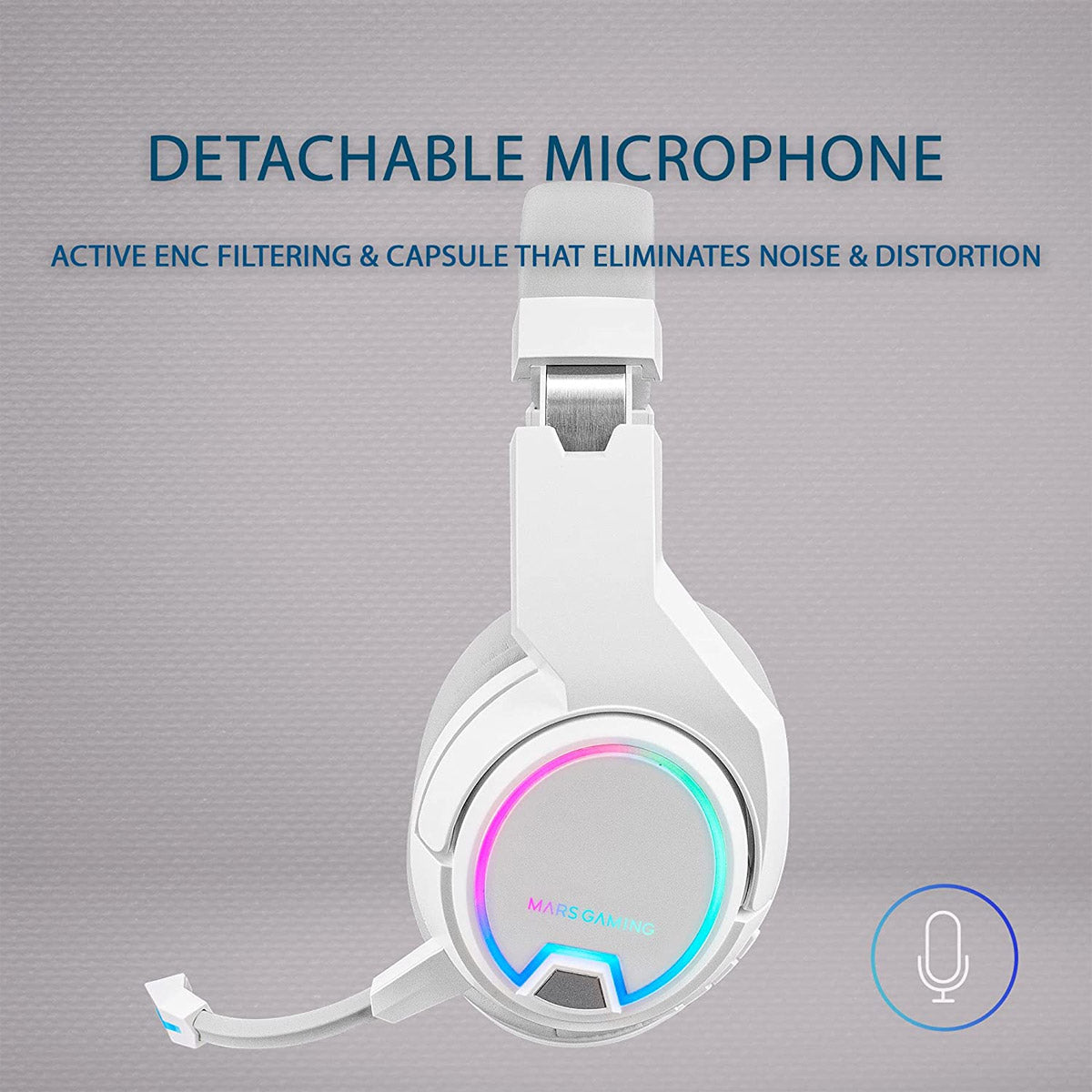 Headphones MARS GAMING MHW-100 WIRELESS ARGB HEADPHONES, DETACH MIC, ENC NOISE CANCEL, WHITE (MHW100W)