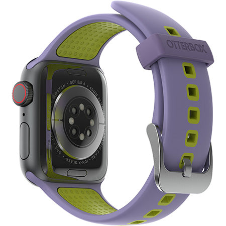 OtterBox Antimicrobial Band. Tipo de produto: Banda, Tipo de dispositivo compatível: Smartwatch, Cor do produto: Verde, Roxo. Peso: 18,7 g. Quantidade por conjunto: 1 unidade(s). Confidently wrap your wrist with Band for Apple Watch. Made of a durable, soft touch, silicone material, the Apple Watch wrist band is comfortable, sweatproof and breathable for daily activity and even an intense gym workout. Intentional design complements your Apple Watch with the all-day comfort and style.