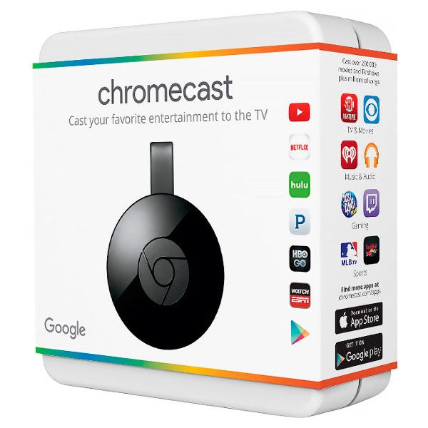 Enjoy Full HD content from your favorite mobile device with the 3rd generation Google Chromecast. It plugs into your monitor or receiver's HDMI port, allowing you to stream media from your mobile device or the web. Supports Full HD resolution (1920 x 1080) at 60 Hz to provide a detailed picture on compatible monitors. Chromecast connects to your home network via 802.11ac Wi-Fi and can be controlled by your mobile device or by voice with your Google Home device. Supported operating systems: Android, iOS, Mac, Windows Resolution: Supports up to 1080p resolution at 60 FPS Wireless: 802.11ac (2.4GHz/5GHz) Ports and Connectors: HDMI, Micro USB Power: 5V power supply and 1A Cord Length: 1.52m Product Dimensions: 51.85mm (L) x 13.8mm (W) x 51.9mm (D) Product Weight: 40g