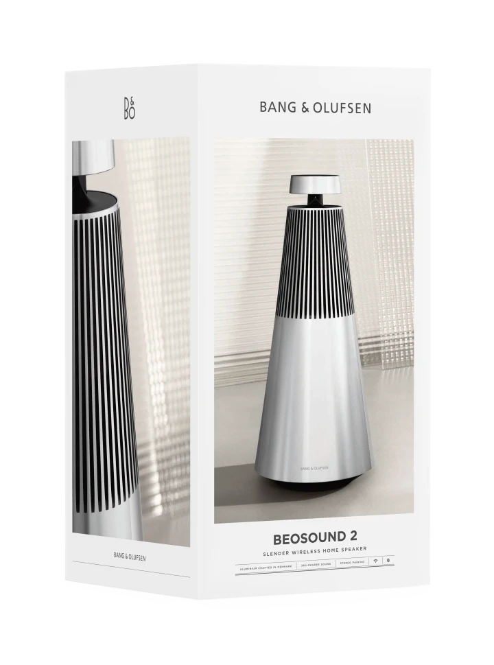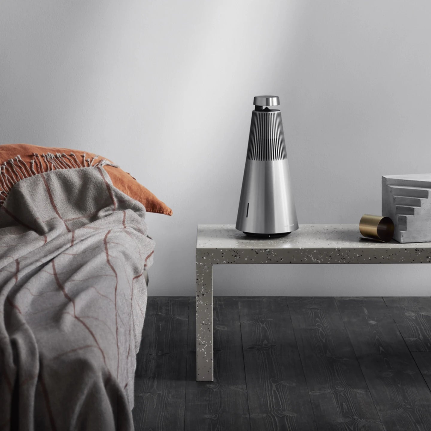 Beosound 2 delivers stellar, truly powerful sound performance. Applying our acoustic lens technology to the speaker's tapered body creates a room-filling 360-degree sound experience from anywhere you place the speaker.