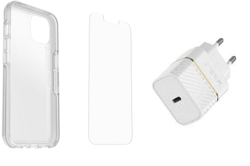 OtterBox Symmetry Clear + Alpha Glass Anti-Microbial + EU USB-C Wall Charger 20W. Tipo de mala: Capa, Compatibilidade da marca: Apple, Compatibilidade: iPhone 13, Tamanho máximo de ecrã: 15,5 cm (6.1"), Cor da superfície: Monocromático, Cor do produto: Transparente. Sleek Protection Bundle You don’t have to choose between a protective case and a stylish one. Symmetry Series is the slim and protective case that shows off your style. All of your phone’s buttons, features and functions work flawlessly. And, Symmetry Series is easy to remove and install. Which is great because with all of the colors, patterns and clear options, you need more than just one. From cute and fun to daring and dazzling, Symmetry Series is the expressive case that's slimmer than ever, as protective as always. Alpha Glass fortified glass screen protector reinforces your touchscreen with ultra-thin, anti-shatter glass, while retaining its clarity and responsiveness.