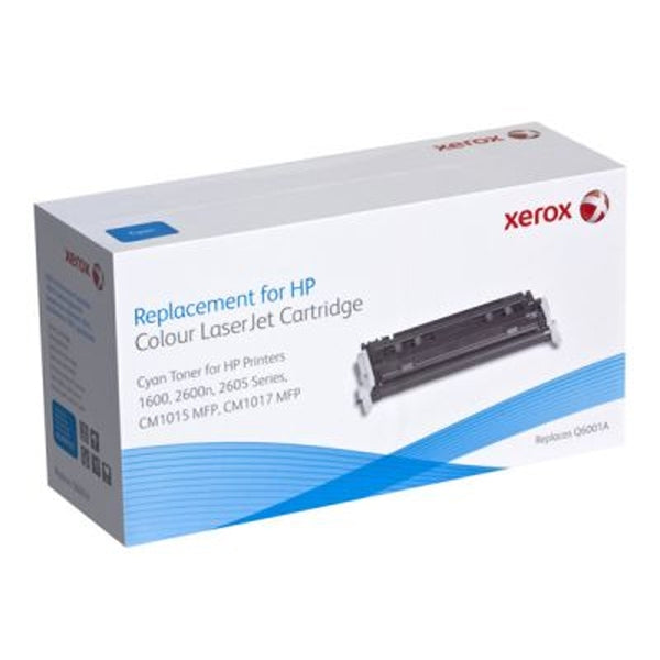 Xerox Cyan Toner Cartridge. Equivalent to HP Q6001A. Compatible with HP Color LaserJet 1600, Color LaserJet 2600/2605, Color LaserJet CM1015/1017 MFP. Color toner page yield: 2000 pages, Black toner page yield: 2000 pages, Print cartridge color(s): Cyan Weights and dimensionsWidth175 mmDepth359 mmHeight136 mmWeight1 kg
