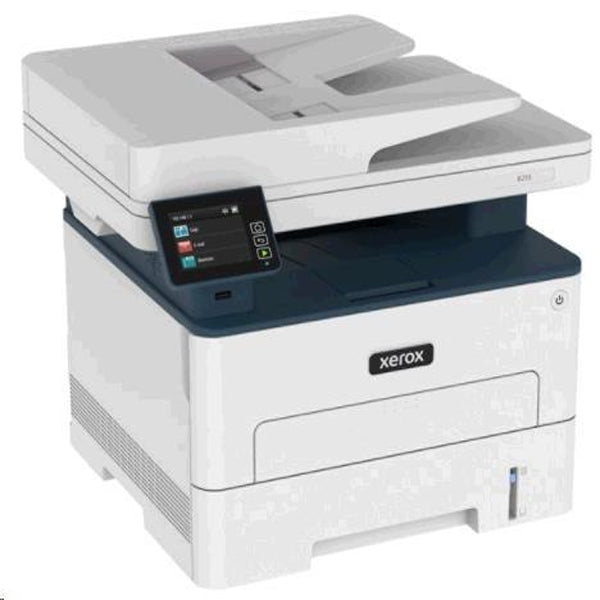 Xerox B235 A4 34ppm Wireless Duplex Copy/Print/Scan/Fax PS3 PCL5e/6 ADF 2 tray Total 251 sheets. Print technology: Laser, Printing: Black and white printing, Maximum resolution: 600 x 600 DPI. Copy: Black and white photocopier, Maximum copy resolution: 600 x 600 DPI. Scanning: Color Scanning, Optical Scanning Resolution: 1200 x 1200 DPI. Faxing: Fax in black and white. Duplex functions: Copy, Fax, Print. Maximum ISO A-series paper size: A4. WiFi. Direct printing. Product Color: Blue, White