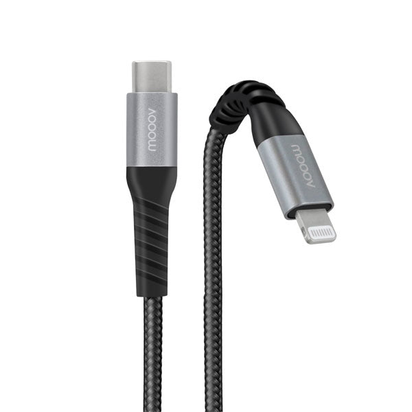 MOOOV LIGHTNING CABLE MFI/USB-C REINFORCED ULTIMATE FOR IPHONE IPAD 1 M BLACK