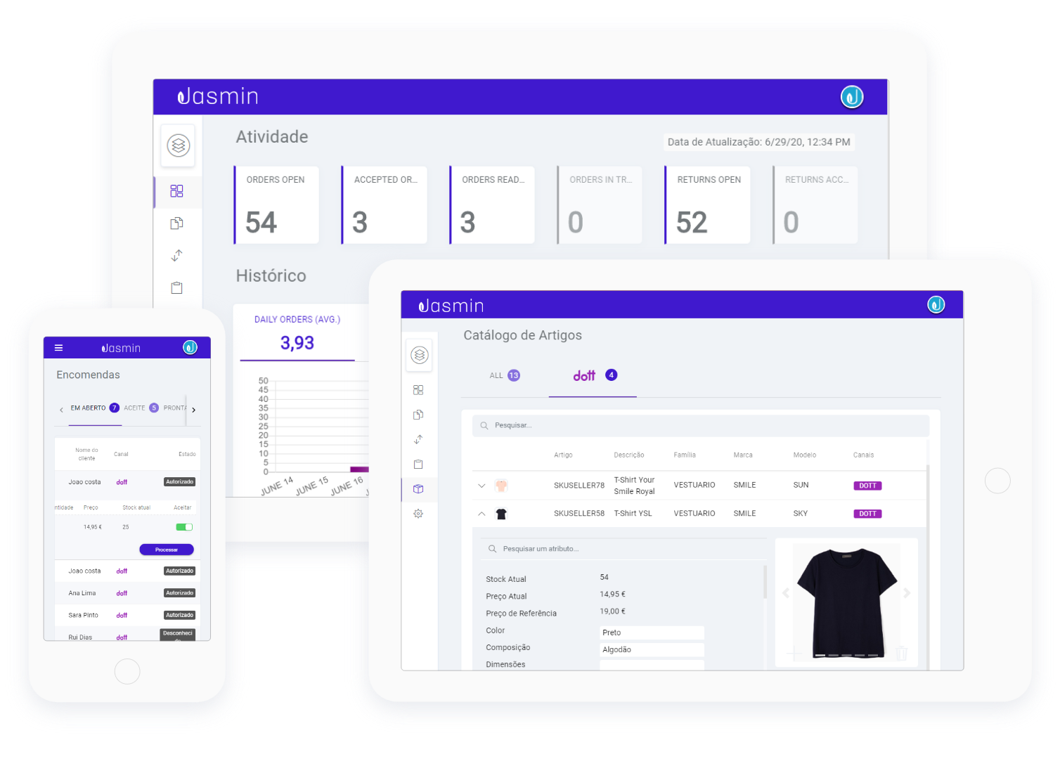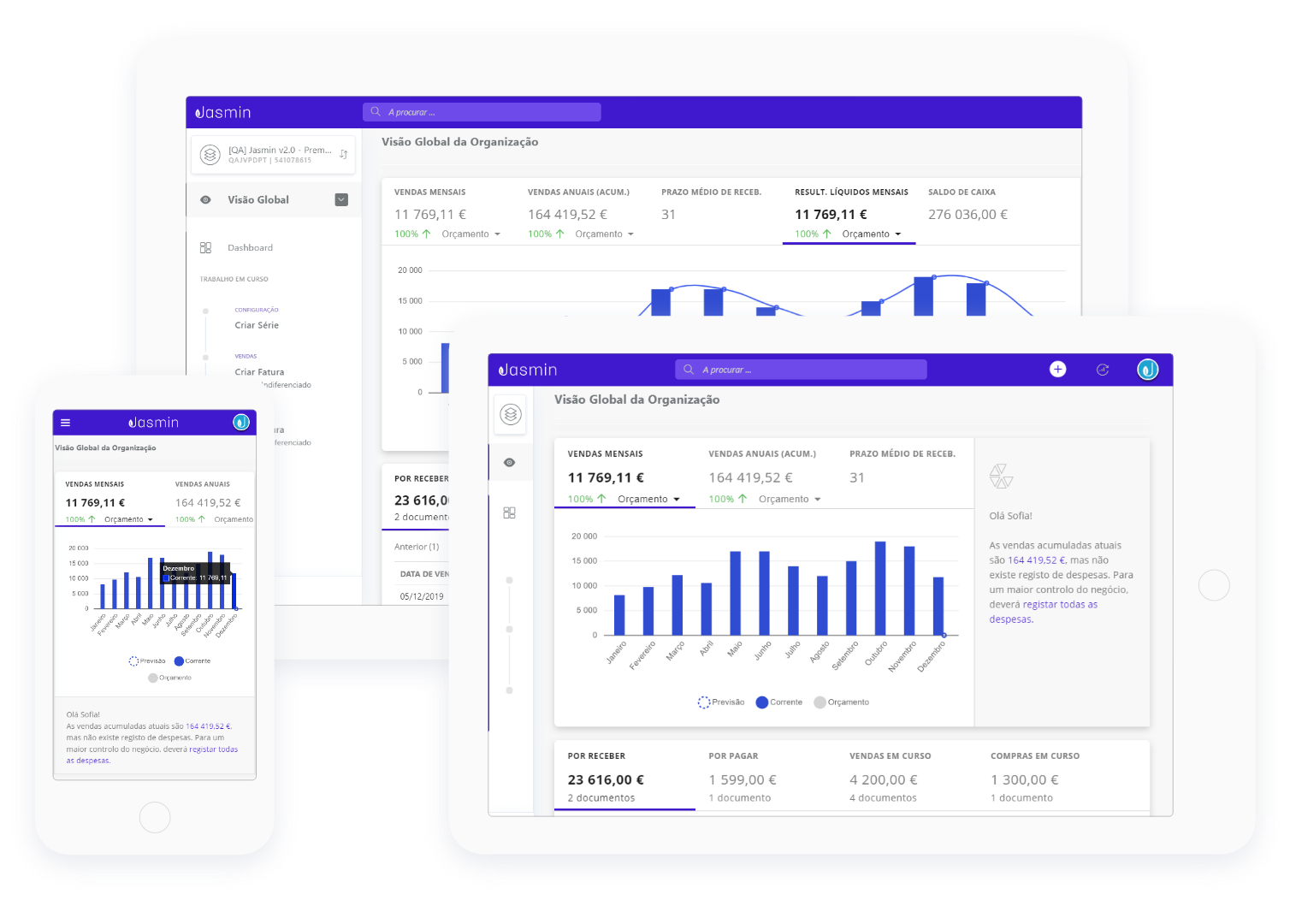 Jasmin is an easy-to-use cloud management software. At any time and from any place, you'll be able to control your business' billing and purchase and sale cycles, monitor expenses, charge your customers faster, monitor current accounts and optimize inventory and warehouse management. Save time with an integrated management of your business, in real time. Includes: Software Certified #2616, ATCUD; Billing, Electronic EDI; Qualified Digital Signature; No user limit; Unlimited number of documents; Support via chat; Remote support; webAPI & Zapier; Sales & Billing; Expenses; Inventory; Current Accounts; Advanced treasury; Ref. MB & Stripe; POS (2 devices); Purchasing & Suppliers; Multichannel eCommerce.