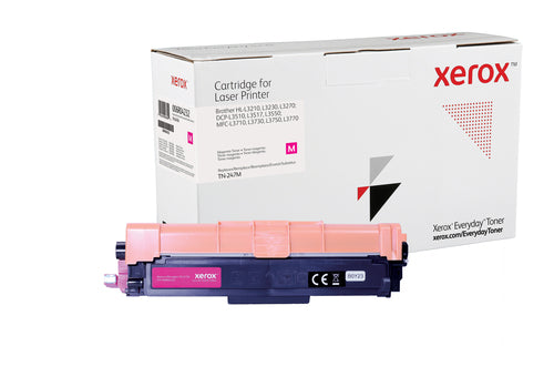 EVERYDAY TONER HIGH YIELD MAGENTA CARTRIDGE EQUIVALENT TO. Consumível Magenta de Rendimento alto Everyday, produto Xerox equivalente a Brother TN-247M, 2300 páginas foi concebido a pensar no desempenho, na fiabilidade e na segurança que espera da Xerox, sem as despesas associadas aos consumíveis dos fabricantes originais. A carteira Xerox® Everyday™ incluí consumíveis para as principais marcas de impressoras e copiadores (A4-carta/legal e A3/tabloide). Os produtos químicos utilizados no toner e os plásticos do cartucho cumprem ou até excedem as normas do setor relativas à segurança global e à conformidade ambiental. Os consumíveis Xerox Everyday são fornecidos com garantia vitalícia e satisfação garantida.