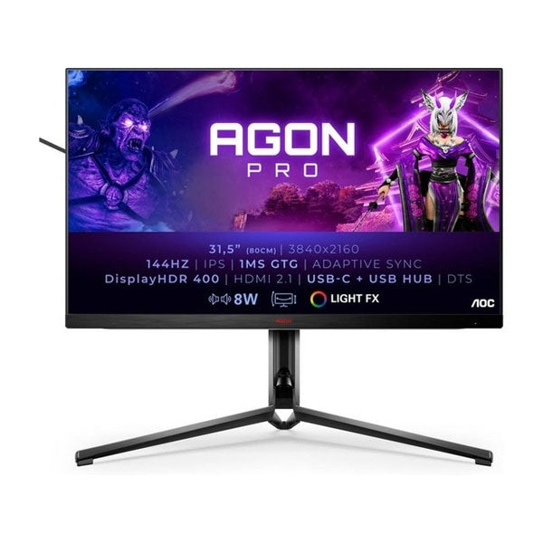 AOC AGON PRO AG344UXM. Screen size diagonal: 86.4 cm (34), Resolution: 3440 x 1440 pixels, HD type: UltraWide Quad HD, Display technology: LED, Response time: 1ms, Native aspect ratio: 21:9 , viewing angle (horizontal): 178°, viewing angle (vertical): 178°. Built-in speakers. Built-in USB hub, USB hub version: 3.2 Gen 1 (3.1 Gen 1). VESA Mount, Height Adjustment. Product color: Black, RedWeights and dimensionsSet length (with stand)816.4 mmSet width (with stand)400.1 mmWeight (with stand)12.8 kgLength (without base)81.6 cmWidth (without base)8 .79 cmHeight (without base)37.2 cm