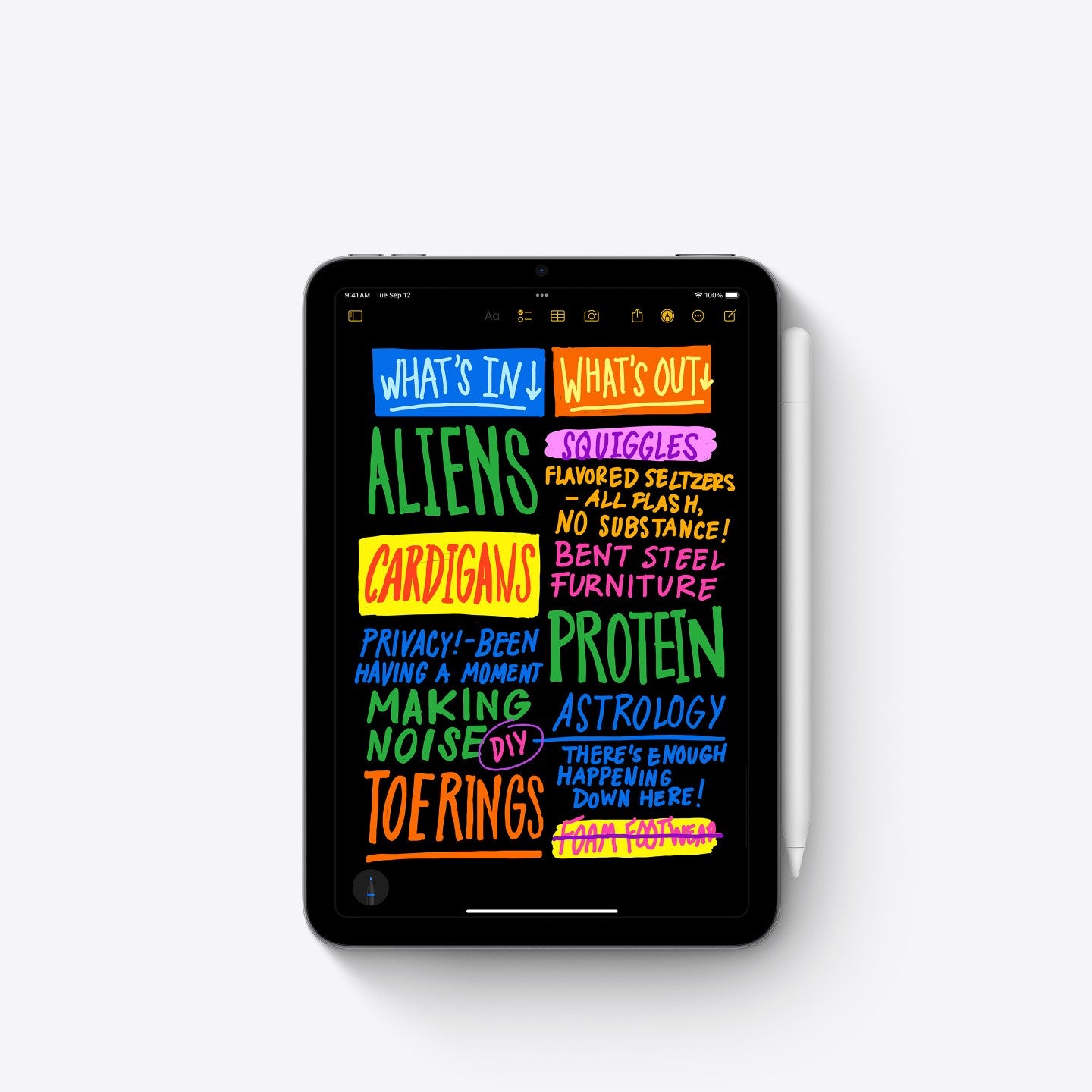 The new iPad mini. Mega power, mini size. New 8.3 full screen, the latest Apple processor, the A15 Bionic with Neural Engine, compatible with the Apple Pencil 2nd gen. and in 4 fantastic colors. The new 8.3 Liquid retina display with True Tone technology, a wide P3 color gamut and minimum reflectivity indexes, offers extraordinarily vibrant colors and sharp text wherever you are. The possibility of using the Apple Pencil 2nd gen. It opens up a whole new world and is so easy to use. Apple Pencil magnetically attaches to the side of iPad mini and is always at hand to capture all your inspiration and charge wirelessly. Touch ID is integrated into the top button and allows for secure, simple and fast authentication. Secure and fast payments or just unlocking your iPad at the touch of a finger. The battery has a huge autonomy, up to 10 hours on the web on Wi-Fi or up to 9 hours for Wi-Fi+Cell models, which means you never stop working or playing without missing a beat. Front camera and FaceTime 12 MP, 4K video recording up to 60 fps. iPad mini WI-FI 64 GB Purple version. 293g.