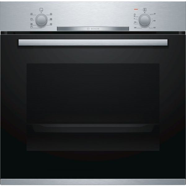 Bosch Series 2 HBA510BR0. Oven size: Medium, Oven type: Electric oven, Total interior capacity of oven(s): 71 l. Placement: Built-in, Color of product: Stainless steel, Type of control: Rotary. Energy efficiency class: A, Energy consumption (conventional): 0.97 kWh, Energy consumption (forced convection): 0.81 kWh. Number of bulbs: 1 bulb(s), Bulb type: Halogen. Installation cubicle length: 56 cm, Installation cubicle width: 55 cm, Installation cubicle height: 58.5 cm