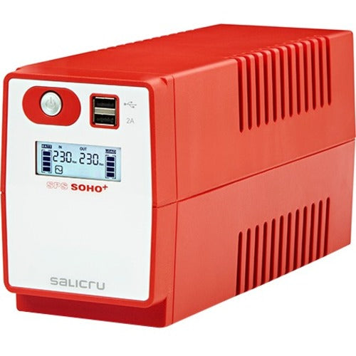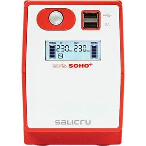 SALICRU UPS SPS 500 SOHO+ SHUCKO LINE INT. Os Sistemas de Alimentação Ininterrupta (UPS) da série SPS SOHO+ da Salicru incorporan, como prestações mais destacáveis, a tecnologia Line-interactive, a compatibilidade com cargas APFC (Active Power Factor Correction) e um carregador duplo USB na parte frontal; tudo isto num intervalo de potências que vai de 500 VA a 2200 VA e em versões com tomadas de saída Schuko ou IEC. A tecnologia Line-interactive está baseada num regulador automático de tensão AVR (Buck/Boost) que atenua as possíveis flutuações da tensão de entrada, provocando simultaneamente um menor uso das baterias, alargando a vida das mesmas e dispondo da autonomia máxima, se for necessário. Também inclui interface USB com protocolo HID para o controlo, configuração de parâmetros e encerramento/fecho do computador. Também está disponível um pacote de softwares para a gestão e monitorização dos ambientes associados, incluindo para sistemas virtualizados. A gama de modelos é formada pelas potências: 500 VA, 650 VA, 850 VA, 1200 VA, 1600 VA e 2200 VA.