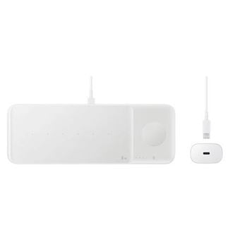 Samsung Wireless Charger Trio. Charger type: Indoor, Power supply type: USB, Charger compatibility: Headphones, Smartphone, Smartwatch. Input Voltage: 9V. Wireless Charging, Fast Charging. Product color: White Weights and dimensionsWidth240 mmDepth15.5 mmHeight86 mmWeight320 g