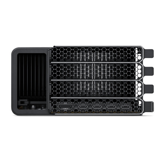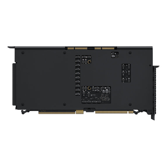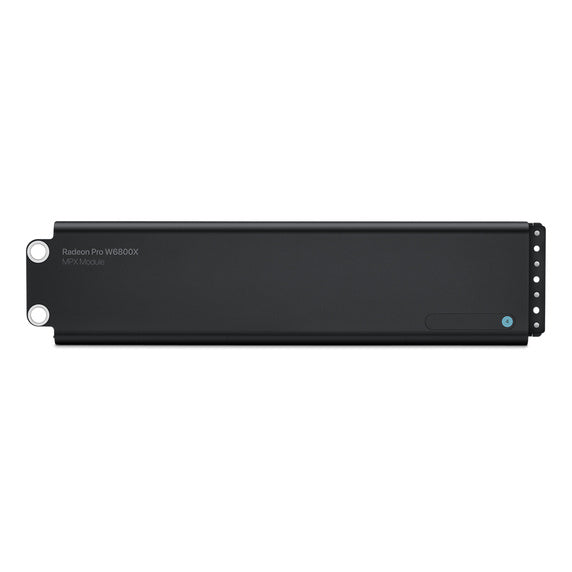 For professional-grade graphics and the most demanding applications, choose the Radeon Pro W6800X MPX Module graphics card with 32GB of GDDR6 memory, which delivers up to 512GB/s of memory bandwidth. You can install up to two on your Mac Pro and link with Infinity Fabric Link to apps like Final Cut Pro for advanced multi-GPU performance. This graphics card option also includes calculations up to 16.0 teraflops single-precision or 32.0 teraflops semi-precision. It supports six 4K displays, three 5K displays, or three Pro Display XDR displays. And the full-height MPX Module fits into an MPX bay and uses additional power and PCIe bandwidth to provide four additional Thunderbolt 3 ports and an onboard HDMI 2.0 port. Compatible with Mac Pro (2019). Requires macOS Big Sur 11.5 or later.