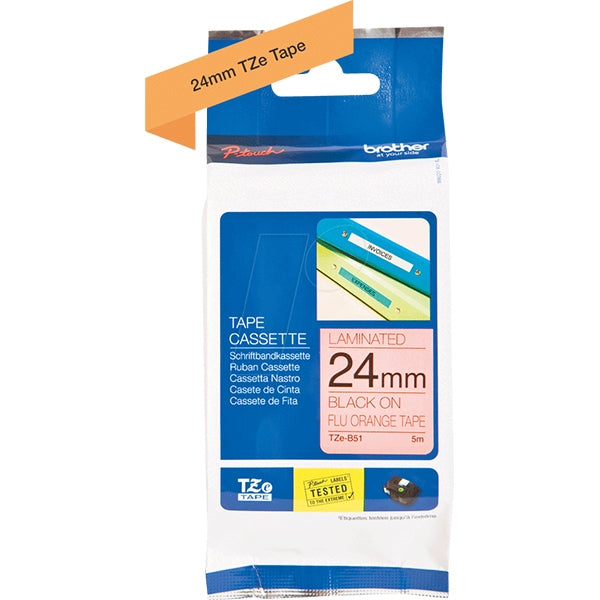Laminated tape. Black text on fluorescent orange background. Width: 24mm. Length: 5m