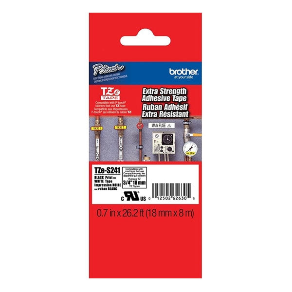 BROTHER TAPE 18MM WHITE/BLACK SUPER ADHESIVE