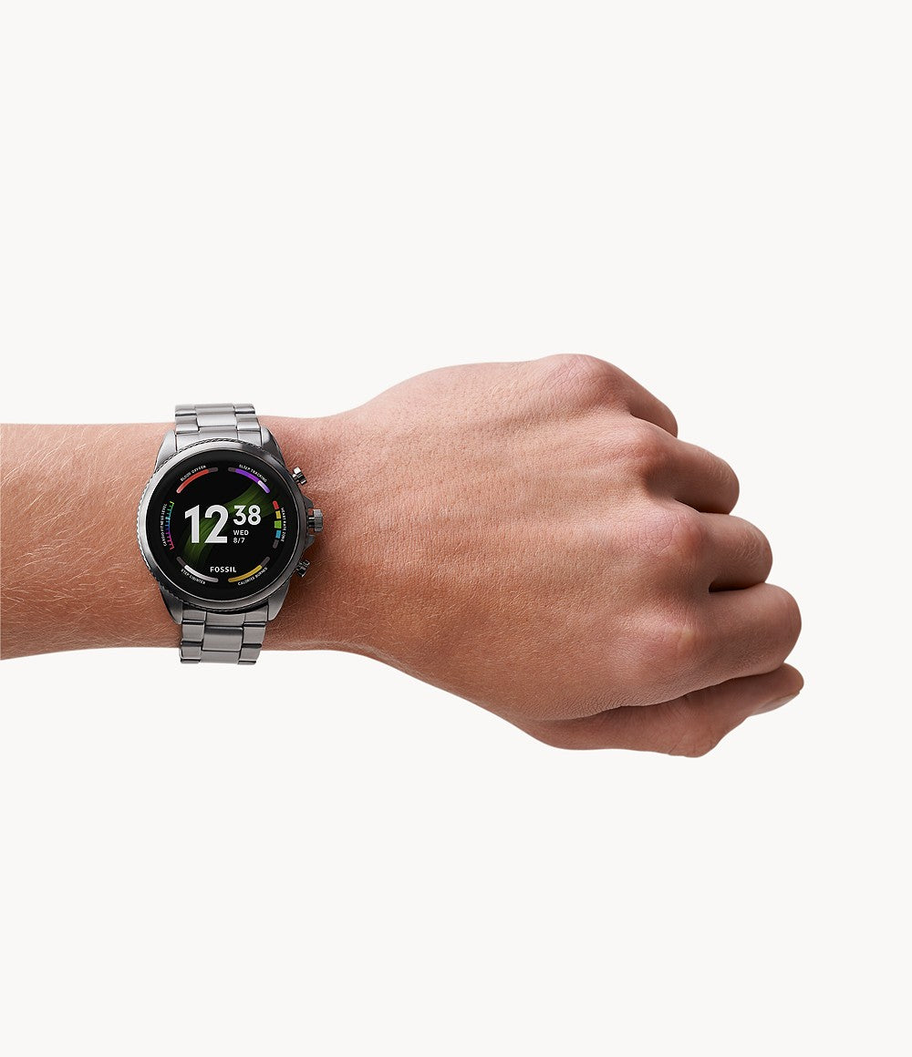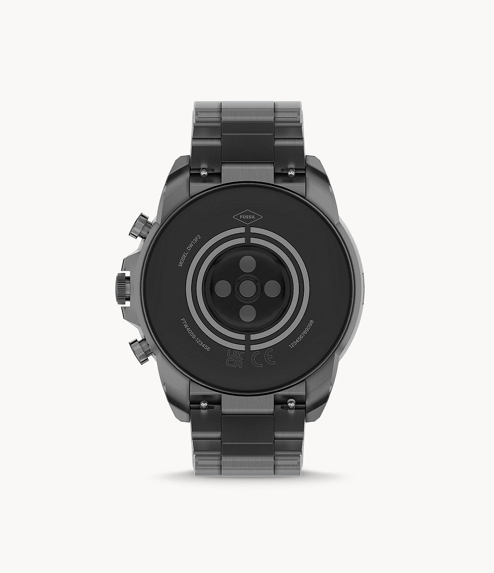 Fossil FTW4059. Tamanho do ecrã na diagonal: 3,25 cm (1.28"), Tecnologia de apresentação: AMOLED, Resolução: 416 x 416 pixels, Ecrã táctil. Wi-Fi. Material de banda: Aço inoxidável, Cor da pulseira: Cinzento, Dimensões da pulseira: Tamanho único. Way more. Way faster. This 44mm Gen 6 touchscreen smartwatch features a smoke-tone stainless steel bracelet, 2x faster charging speed (80% in a little over 30 minutes), Qualcomm 4100+ technology and tons of personalization options.