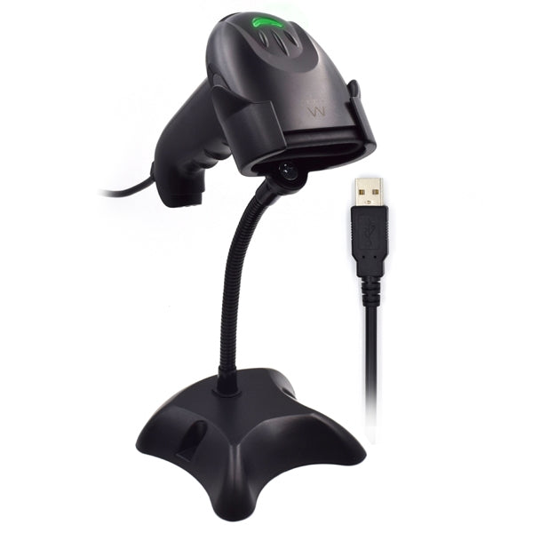 CCD sensor barcode scanner 500 readings per second, Easy to install Plug and Play barcode scanner via USB interface, Decoding capability: all UPC/EAN/JAN, Codabar, code 11, code 93, MSI, code128, UCC / EAN-128, code 39, full ASCII code 39, EAN-8, EAN-13, UPC-A, Code32 / Italian Pharmacy, Industrial 25, CODABAR / NW7, Interleave 25, Standard 2, Allows continuous readings or simple, performs automatic or manual readings of the media, Ergonomic design and highly durable. ABS housing material shock and abrasion resistance, Precise 4 mil resolution, Reads damaged codes in low light and light conditions, fast and accurate, Simple setup via barcodes using its manual, Advanced decoding technology, powerful decoding capability error correction, Handsfree base included