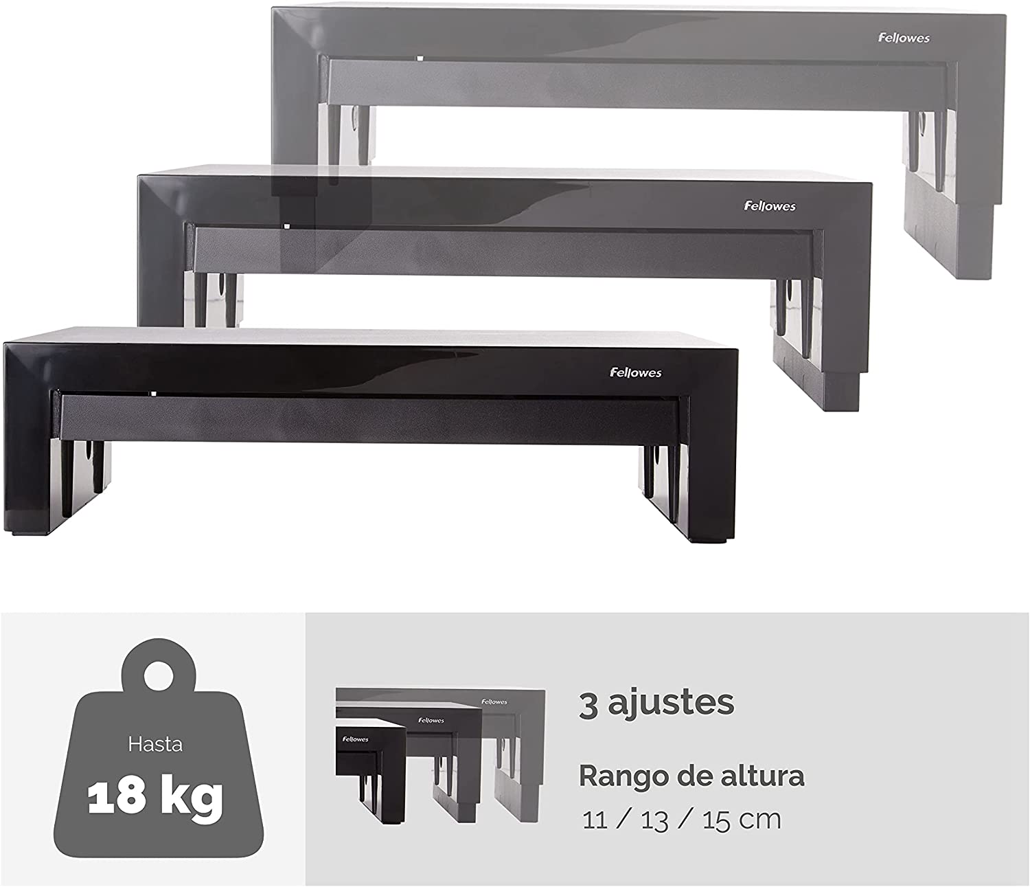 MONITOR SUPPORT WITH DRAWER DESIGNER SUITES, Fellowes Designer Suites. Maximum weight (capacity): 18.14 kg. Product color: Black Weights and dimensionsWidth406 mmDepth238 mm