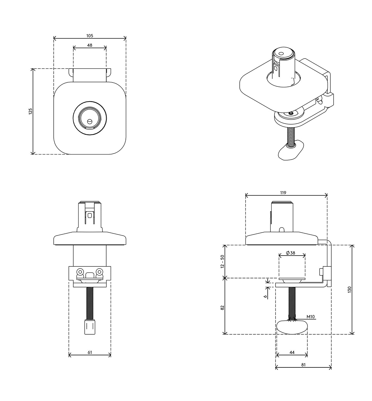 Suitable for a desktop thickness of 12 up to 50 mm (0.5" – 2.0")