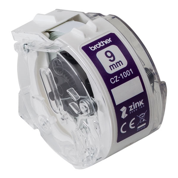 Adhesive tape roll for color label printing. Width: 9mm. Length: 5m.