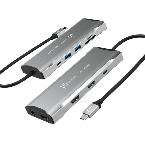 j5create JCD397. Tecnologia de conetividade: Com fios, Interface do host: USB 3.2 Gen 1 (3.1 Gen 1) Type-C, Fornecimento de energia USB até: 100 W. Taxa de transferência de dados Ethernet LAN: 10,100,1000 Mbit/s. Cor do produto: Cinzento, Nome da cor: Space Grey, Tipos de cartão de memória compatíveis: MicroSD (TransFlash), SD. Tipo de fonte de alimentação: USB, Conetor de alimentação: USB Type-C, Tensão de saída: 5 V. Largura: 55 mm, Profundidade: 17 mm, Altura: 148 mm. Equipped with an advanced USB-C® E-Mark chip, this multi-monitor mini dock is compatible with USB4™ hosts and devices, featuring everything you need, from triple video outputs to 10Gbps USB™ ports, as well as 100W Power Delivery pass-through charging. This USB-C® mini dock supports DisplayPort™ 1.4 and Multi-Stream Transport (MST), giving you the ability to create a dual or triple 4K workstation with two HDMI™ and a DisplayPort™ output. It provides three USB™ SuperSpeed 10 Gbps ports (2 USB-C® and 1 USB™ Type-A) for peripheral connectivity or downstream charging, an SD™ & microSD™ 4.0 memory card reader/writer to manage your media files, and a Gigabit Ethernet port to access a wired network. It also supports Power Delivery 3.0, providing up to 100W pass-through charging to power the connected peripherals and charge your host laptop with a USB-C® power adapter.