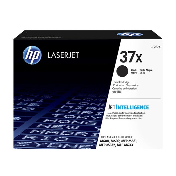 HP 37X. Black toner page yield: 25000 pages, Print cartridge color(s): Black, Pack quantity: 1 unit(s)
