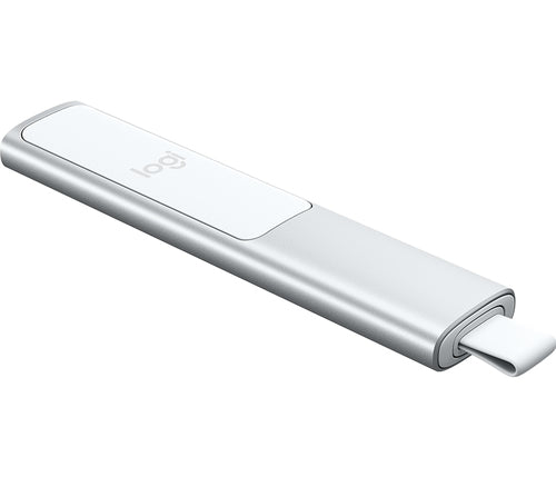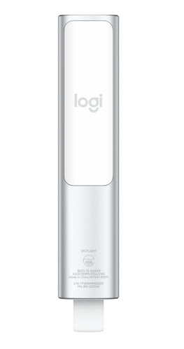 Logitech Spotlight Presentation Remote. Tecnologias sem fios: Bluetooth/RF, Alcance sem fios: 30 m. Tecnologia da bateria: Polímero de lítio (LiPo), Capacidade da bateria: 80 mAh, Tempo de carga: 60 min. Cor do produto: Prateado, Funções de apresentação: Comando, Material: Alumínio, Plástico. Peso do receptor: 1,72 cm, Largura do receptor: 4,04 cm, Altura do receptor: 6,8 mm. Sistema operativo Windows compatível: Windows 10,Windows 11. PRESENT LIKE NEVER BEFORE: With Spotlight Presentation Remote. MEET SPOTLIGHT: A whole new standard in presentation control. Combining minimalist design with advanced functionality, it's as effortless to use as it is impressive to wield. SHOW IT: Highlight like never before with Spotlight's advanced pointer system. Choose your preferred mode to precisely highlight areas of focus or magnify them in pixel-perfect detail. PLAY IT: Use the on-screen cursor to play and pause videos, open links, and enjoy a range of rich content interaction. No need to break your flow and go anywhere near a mouse or laptop. TRUST IT: Spotlight connects instantly via USB receiver or Bluetooth®. It's plug-and-play on most platforms and compatible with all popular presentation apps. Plus, it's fully rechargeable and boasts a 100-foot operating range. TIME IT: Manage your time perfectly from your first until your final slide. Set timed milestones within the app and receive vibration alerts directly to hand.