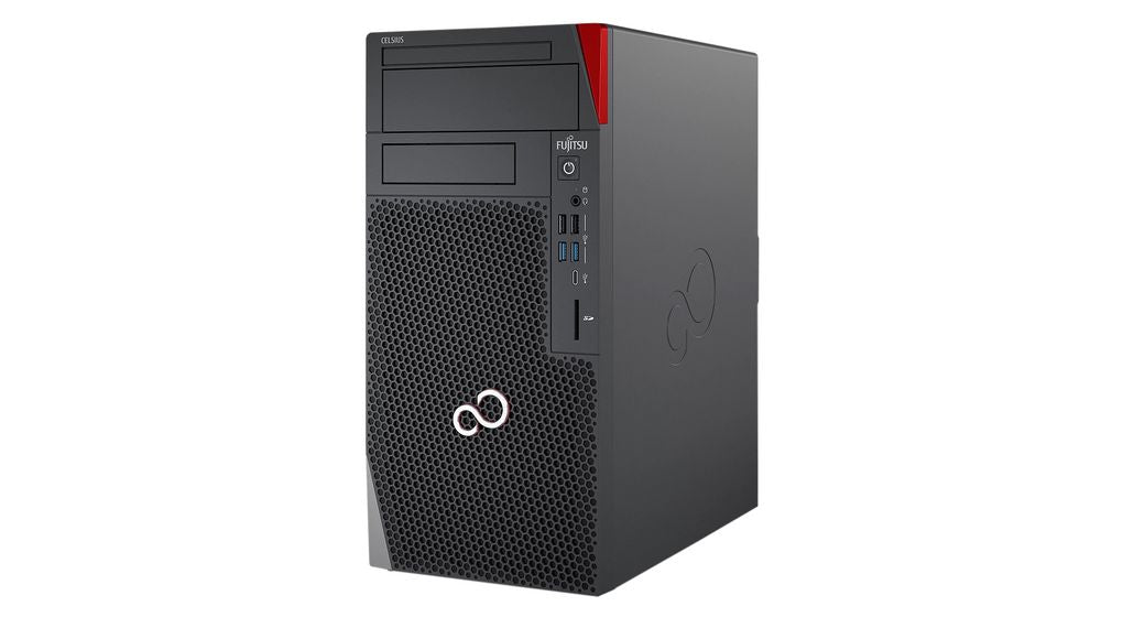 Fujitsu CELSIUS W5010 Posto de trabalho - 1 x Intel Core i9 Microprocessadores 10ª geração 3.70 GHz - 32 GB DDR4 SDRAM RAM - 512 GB SSD - Micro-torre - Windows 10 Pro - Série ATA/600 Controlador - 0, 1, 5, 10 RAID Levels - Gigabit Ethernet. Mini CAD Powerhouse. If you thought you would need to sacrifice performance, expandability, price or energy efficiency in a microtower design - think again. The FUJITSU CELSIUS W5010 desktop workstation goes far and beyond with its innovative design, featuring maximum graphic performance and dual slot full-length graphics card support. With its best-in-class low-noise emissions, it enables a quiet and efficient working environment. No compromise in terms of performance, expandability and price, Designed with CAD customers in mind: performance, reliability and flexibility - at an affordable price, Choose between the latest 10th generation Intel® Core™ processors or the powerful Intel® Xeon® W-1200 processors, Support of Windows 10 Pro, Up to 128 GB DDR4 2,933 MHz memory (incl. ECC), Dual slot full-length graphics cards (up to NVIDIA® Quadro® RTX 5000), Broad choice of processors and professional graphics cards, Support of 24/7 operation with reliable high-endurance and business critical drives, VR-ready desktop workstation, Innovative space-saving design - made in Europe, 21-liter desktop microtower workstation