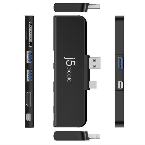 j5create JDD320B. Interface do host: USB 3.2 Gen 2 (3.1 Gen 2) Type-A, Interfaces de hub: HDMI, Mini DisplayPort, USB 3.2 Gen 1 (3.1 Gen 1) Type-A, Tipos de cartão de memória compatíveis: SD. Velocidade real de transferência: 5000 Mbit/s, Taxa máxima de actualização: 30 Hz, Resolução máxima (HDMI): 3840 x 2160 pixels. Consumo de energia (típico): 2,1 W, Tensão de saída: 5.05 V, Corrente de saída: 0,43 A. Largura: 36,3 mm, Profundidade: 9 mm, Altura: 117 mm. Quantidade por conjunto: 1 unidade(s), Comprimento da embalagem: 145 mm, Profundidade da embalagem: 95 mm. The JDD320 is designed to keep all the ports on one side for easy cable management. It supports up to 4K resolutions @ 30 Hz via HDMI™ and up to 4K @ 60 Hz via mini DisplayPort™ (only one output is supported at once). The USB™ Type-A 3.0 ports allow you to connect USB™ peripherals such as a storage device, keyboard, mouse, etc. The removable silicone pad provides a firm grip and protects against accidental disconnections and internal damage.