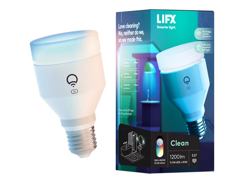 LIFX Clean - LED bulb - shape: A60 - E27 - 11.5 W (80 W equivalent) - class F - multicolor/warm to cool white light - 1500-9000 K - white (pack of 2)