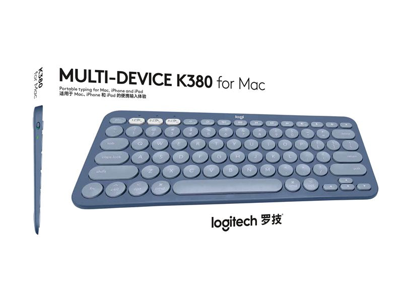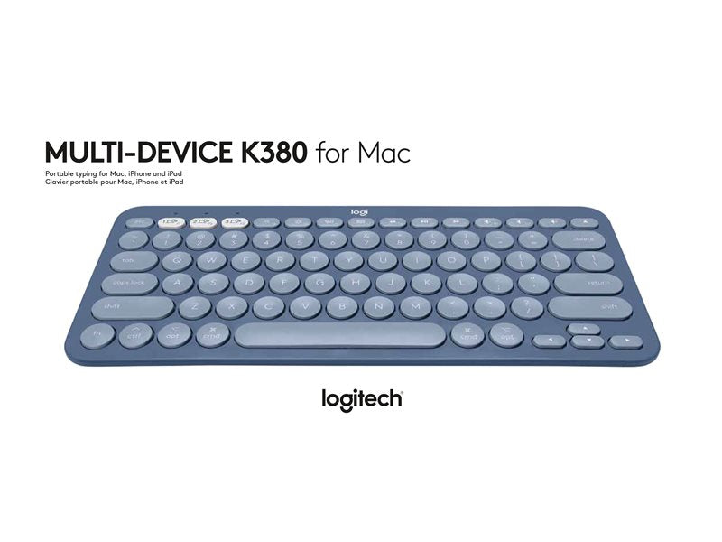 Logitech K380 Multi-Device Bluetooth Keyboard for Mac - Keyboard - Wireless - Bluetooth 3.0 - QWERTY - UK - Blueberry
