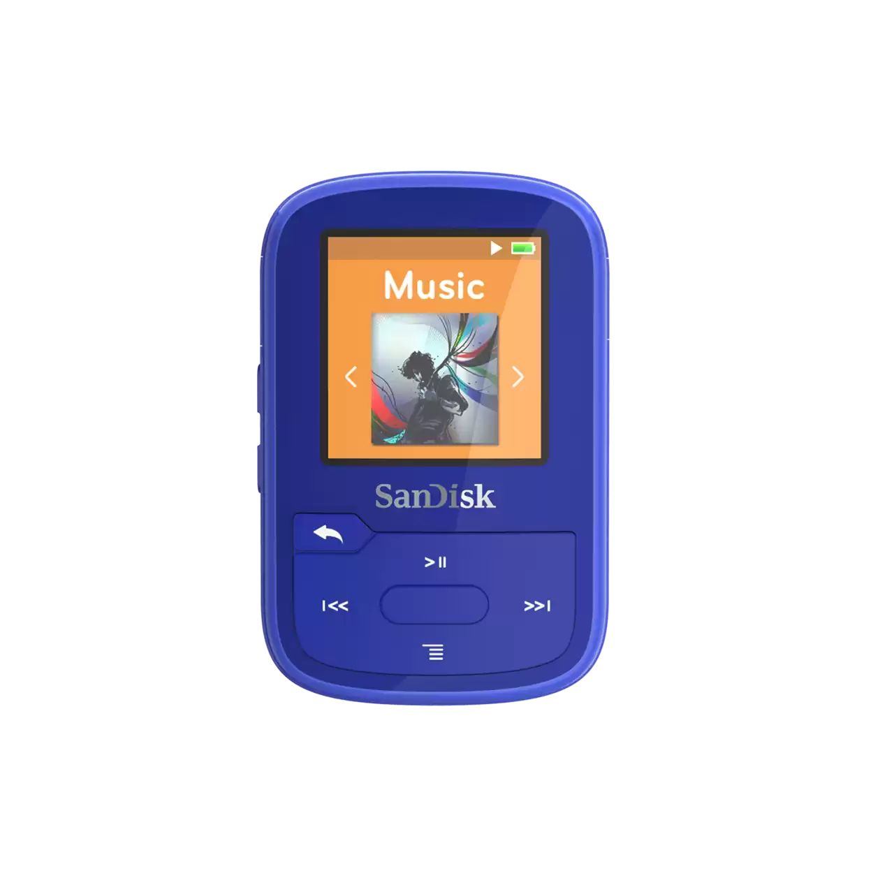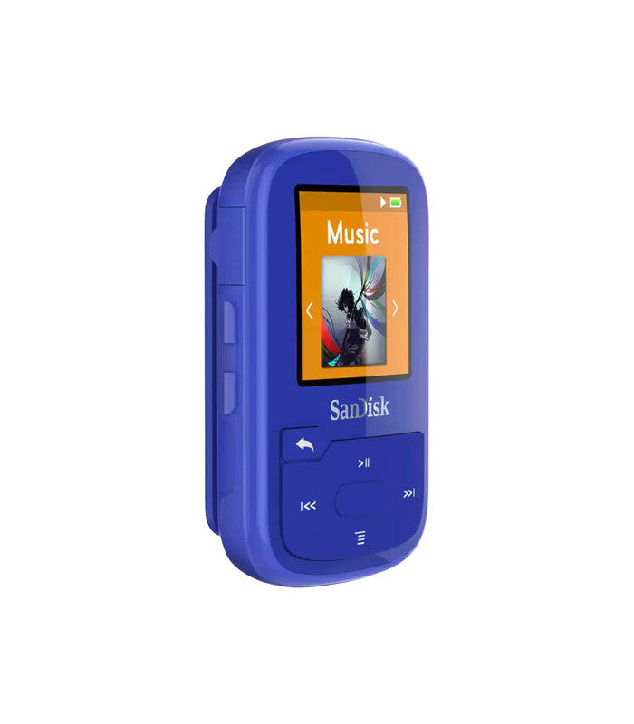 SanDisk Ultrastar Clip Sport. Type: MP3 player. Total storage capacity: 32 GB. Display: LCD. Interface: Micro USB 2.0. FM radio. Continuous audio playback time: 18 h. Weight: 38 g. Product colour: Black. Headphones included. For Your Best Workout—Rain Or Shine The affordable, lightweight SanDisk® Clip Sport Plus MP3 player gives you the freedom and flexibility to work out the way you want. With its durable, water-resistant design1, it’s ready for a muddy mountain bike ride or a trail run in the rain. It also features Bluetooth wireless technology so it pairs with Bluetooth wireless technology headsets or speakers. A 16GB5 capacity means that it’s big enough to store up to 4000 songs2, but it also has a built-in FM radio3. And it’s small enough to clip to your clothes or gear, so you can stop worrying about your device and focus on your workout. A water resistant and durable MP3 player Durable and water-resistant1, the SanDisk Clip Sport Plus MP3 Player stands up to tough workout conditions—rain or shine. Bluetooth® wireless technology for wireless listening Pair the SanDisk Clip Sport Plus MP3 Player with your favorite Bluetooth wireless headsets for even more freedom in your workout. Lightweight clip-on design Clips on to your clothes or gear and stays put for a worry-free workout. Built in FM tuner Tune in to your favorite FM stations or connect with the entertainment system at your gym. Plays up to 18 hours With enough battery power to last for up to 18 hours4 on a single charge (wired headset), your SanDisk Clip Sport Plus player has the stamina to keep up with you for multiple workouts before it needs to recharge. Stores up to 4000 songs 16GB5 capacity holds up to 4000 songs2 so that you’ve got enough music to carry you across the finish line or through your final reps.