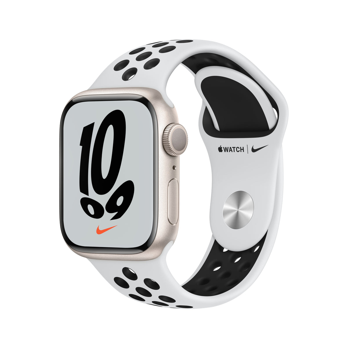 AppleApple Watch Nike Series 7 (GPS) - 41mm - Starry Aluminum - Smart Watch With Nike Sport Strap - Fluoroelastomer - Pure Platinum/Black - Band Size: S/M/L - 32GB - Wi-Fi, Bluetooth - 32 g