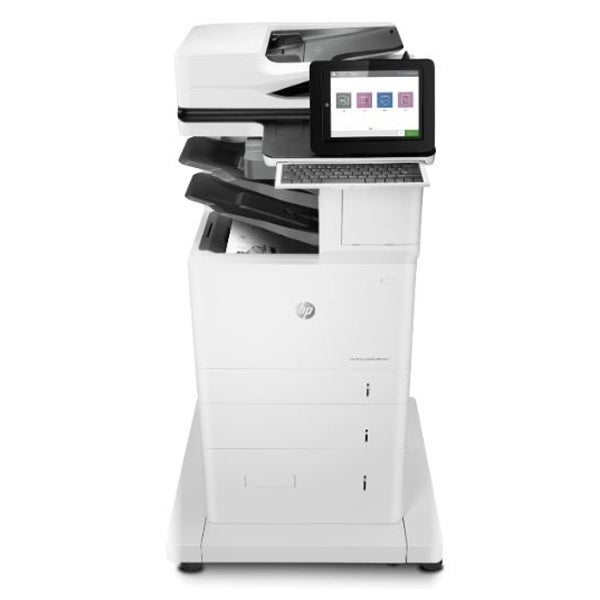 HP Color LaserJet Enterprise Flow MFP M682z. Printing technology: Laser. Number of toners: 4. Recommended monthly volume of pages: between 2000 and 17 000 pages. Print resolution: Up to 600 dpi. Supported media formats: Tray 1: A4, A5, A6, RA4, B5, B6, 16k, 10 x 15 cm, Legal, postcards (single and double JIS), envelopes (DL, C5, B5, C6), Trays 2 and 3: A4, A5, A6, RA4, B5, B6, 10 x 15 cm, Legal, 16k, Dpostcard, Tray 4: A4. Maximum input capacity: Up to 3200 sheets. Duplex printing. Network printing. WiFi. Automatic two-sided scanning with ADF. 20.3 cm (8 in.) Color Graphical Touch Display (CGD), Rotating Display (adjustable angle), Illuminated Home Button (for quick return to the Home menu). Connectivity (Standard): 1 Hi-Speed ​​USB 2.0 port, 2 Solution USB ports (1 walk-up and 1 externally accessible), 1 Gigabit Ethernet 10/100/1000T network port, 1 Hardware Integration Pocket, 1 Fax, 1 Wi-Fi Direct 802.11b/g/n, 1 Bluetooth Low Energy.