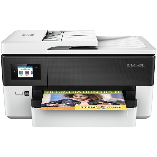 HP Officejet Pro 7720 Wide Format All-in-One Color Inkjet Multifunction Printer, 216 x 356 mm (original) A3 (media), up to 34 ppm (copy) up to 34 ppm (print) 250 sheets, 33.6 Kbps, USB 2.0, LAN, Wi-Fi(n), host USB