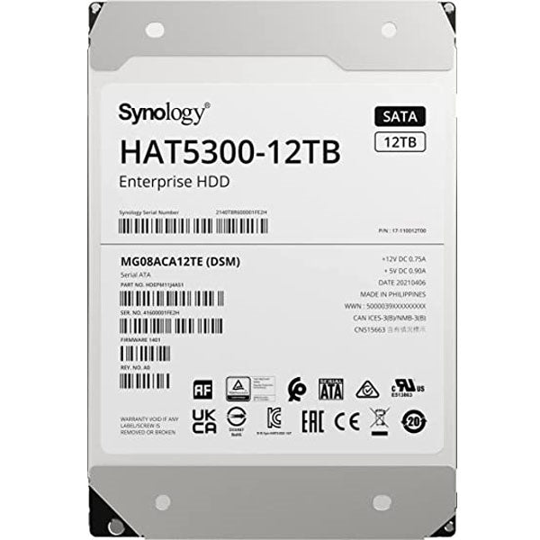 Synology HAT5300 HDD offers class-leading performance thanks to tight integration with DSM and Synology hardware. With over 400,000 hours of internal validation testing and backed by Synology's 5-year limited warranty 1 , the HAT5300 series brings unparalleled reliability to Synology deployments.
