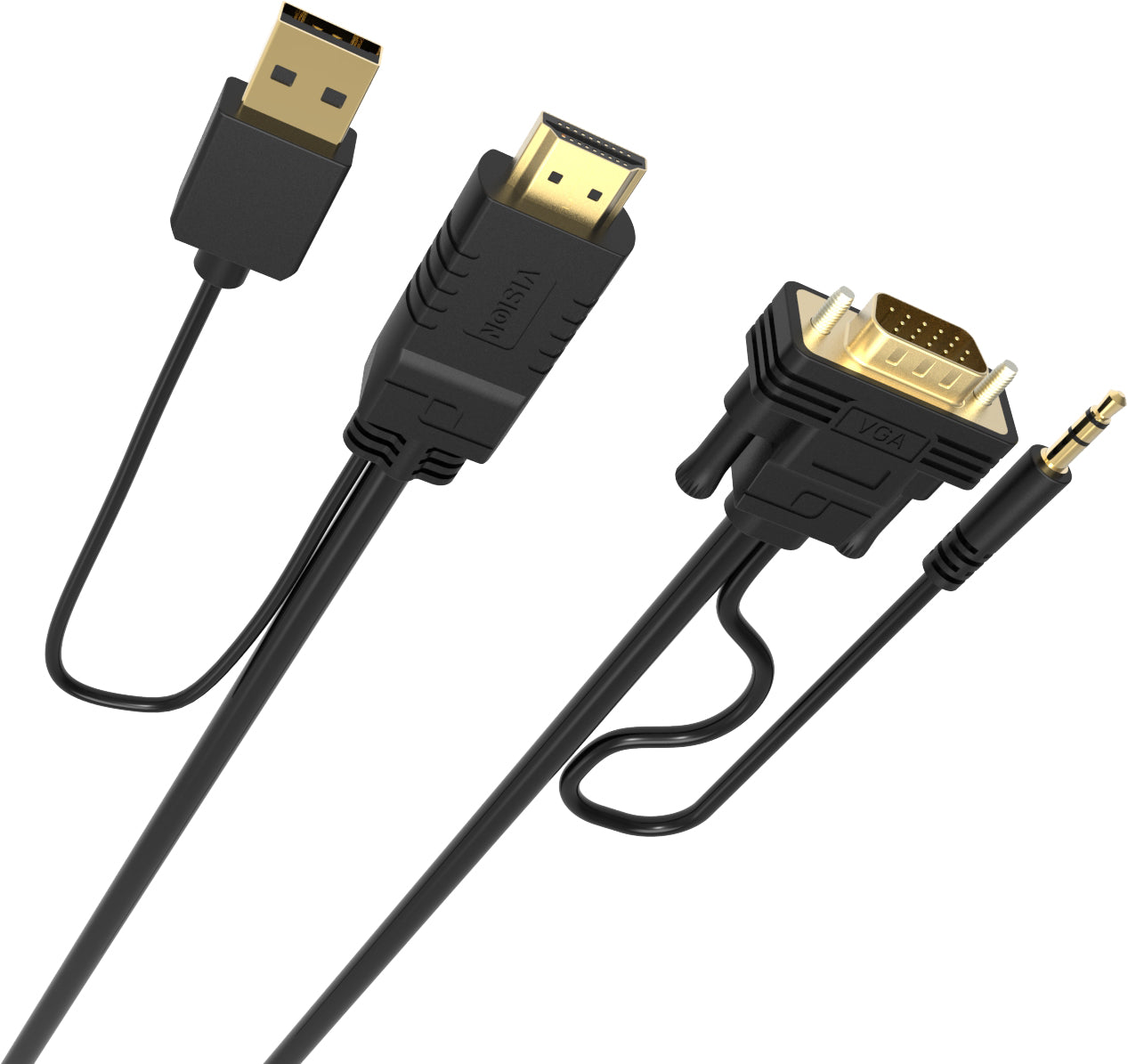 VISION Professional installation-grade HDMI to VGA-and-Minijack cable - LIFETIME WARRANTY - HDMI v1.3 max 1920 x 1080 - active chip -VGA to HDMI not supported - gold plated connectors - HDMI (M) to VGA (M) + mini jack (M) - outer diameter 6.0 mm - 28