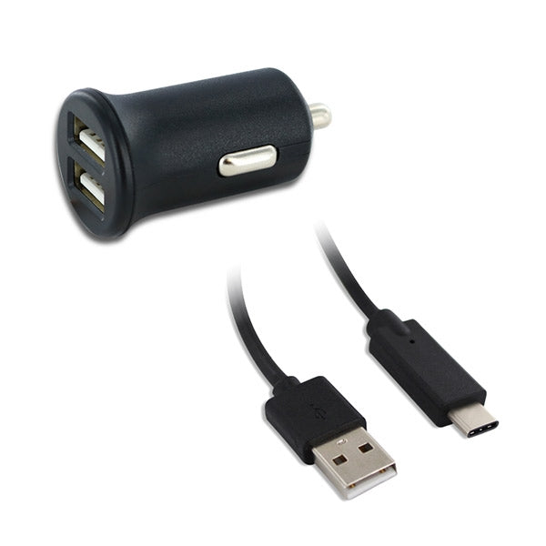 CARGADOR COCHE 2 X USB 2.4amp BLANCO + CABLE USB / TIPO C 1 METRO