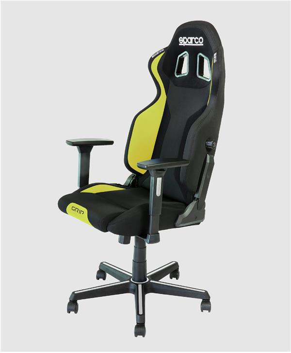 Las otras partes del GRIP están recubiertas con un fino tejido altamente resistente a la abrasión. Al igual que con todas las sillas de oficina/juego Sparco, la altura y la inclinación del asiento se pueden ajustar. El respaldo, además de reclinable, también tiene ajuste lumbar micrométrico. El Grip cuenta con un dispositivo antivuelco con un bloqueo del respaldo de 150° y una base de pistón certificada SGS / BIFMAX5.1 / EN1335, además de una base de polímero de alta resistencia y un mecanismo de inclinación con 5 ruedas sólidas.