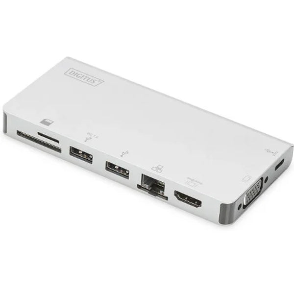 DIGITUS USB-C TRAVEL DOCK 8 PUERTOS 2X VIDEO 2X USB-C 2X USB3.0 RJ452X LECTOR DE TARJETAS