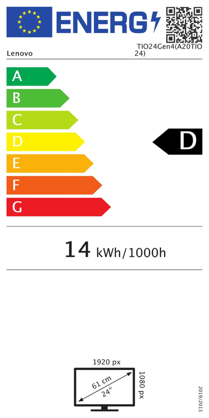 ThinkCentre TIO24Gen4 Monitor WLED FHD de 23,8 pulgadas Cámara de 1080p 2 altavoces estéreo de 2 W