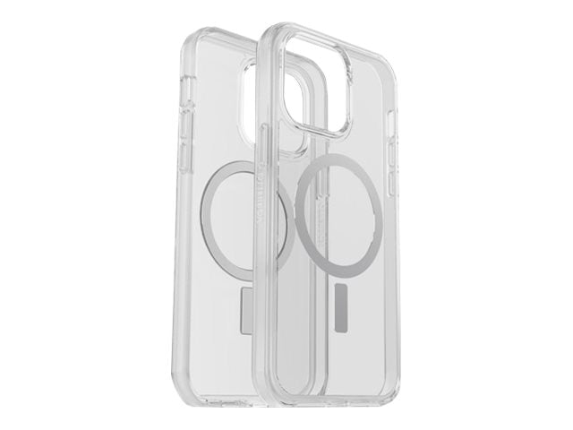 OtterBox Symmetry Plus Clear. Tipo de mala: Capa, Compatibilidade da marca: Apple, Compatibilidade: iPhone 14 Pro Max, Tamanho máximo de ecrã: 17 cm (6.7"), Cor da superfície: Monocromático, Cor do produto: Transparente. Get the most out of your new Apple iPhone 14 Pro Max with Symmetry Series+ Clear with MagSafe compatibility. This slim case is made with +50% recycled plastic and tested to 3X as many drops by military standard (MIL-STD-810G 516.6). Additionally, a silver-based antimicrobial additive is integrated into the case that helps inhibit microbial growth and defends the case exterior against many common bacteria. Built to show off your iPhone's sleek design and thoughtfully developed to interact with Apple's innovative MagSafe system - bringing a new level of interactivity to your iPhone.