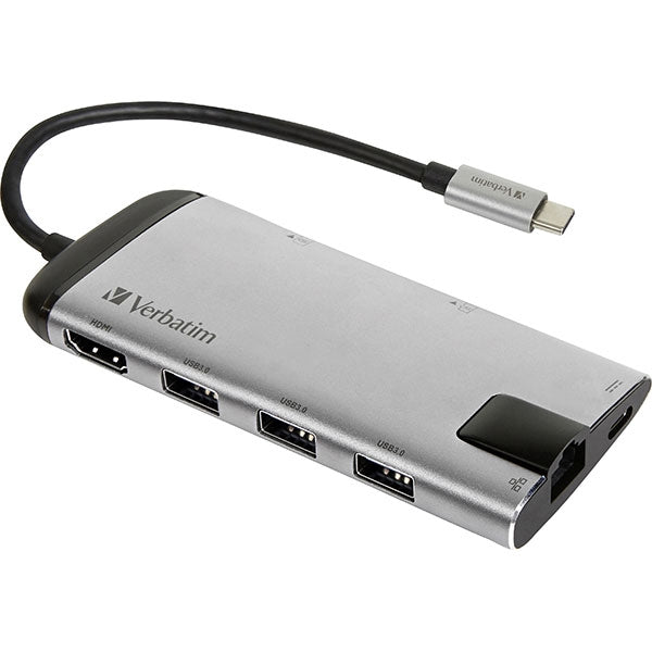 VERBATIM HUB USB-C 2xUSB3 1xHDMI 1XUSB-C PD 100W 1xRJ45 1XC.LECTOR ALUMINIO