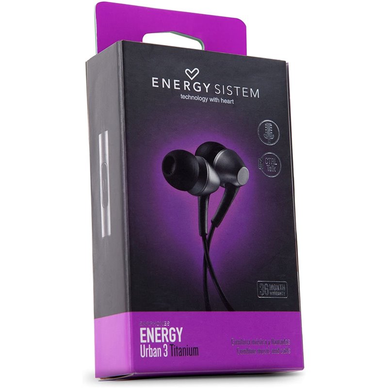 Energy Earphones Urban 3 - Auriculares in-ear con micrófono - in-ear - con cable - jack 3,5 mm - titanio - para Phone Max 2+