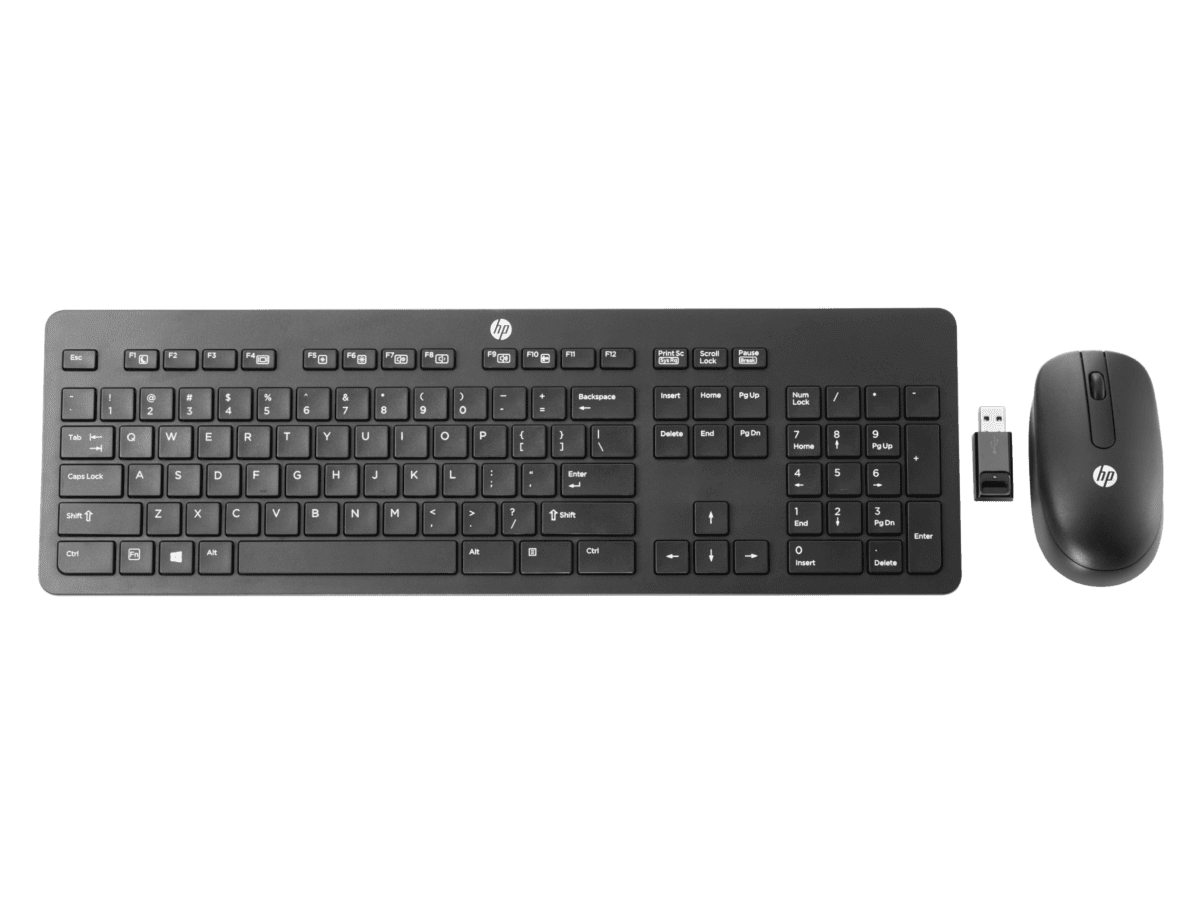 Aumente la productividad y maximice su espacio de trabajo con el elegante y compacto teclado y mouse inalámbricos HP Slim.