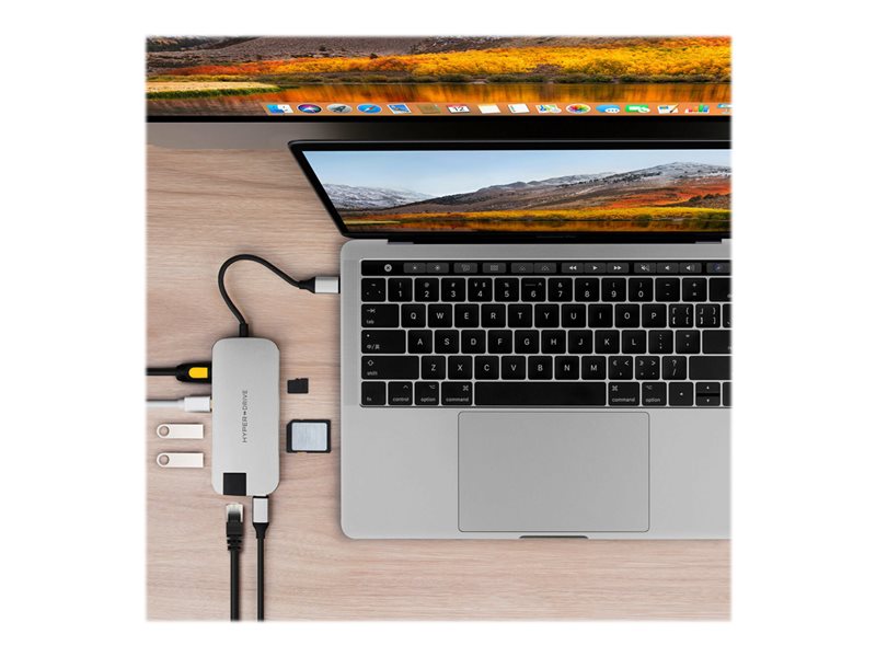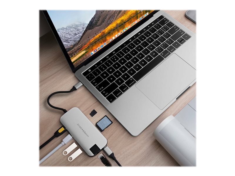 Hub HyperDrive Slim 8 en 1 - Estación de acoplamiento - USB-C - HDMI, Mini DP - GigE