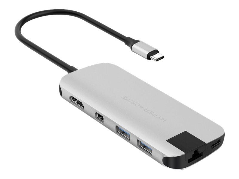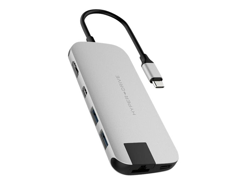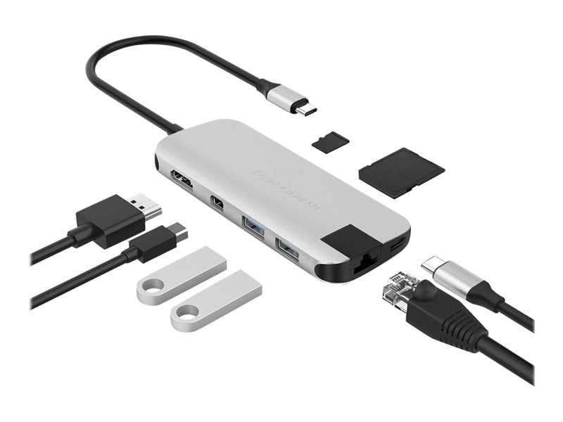 Hub HyperDrive Slim 8 en 1 - Estación de acoplamiento - USB-C - HDMI, Mini DP - GigE (HD247B-SILVER)