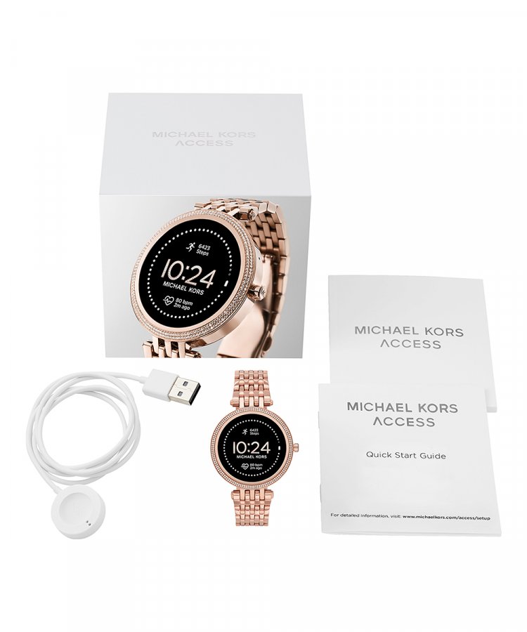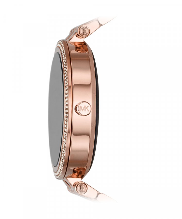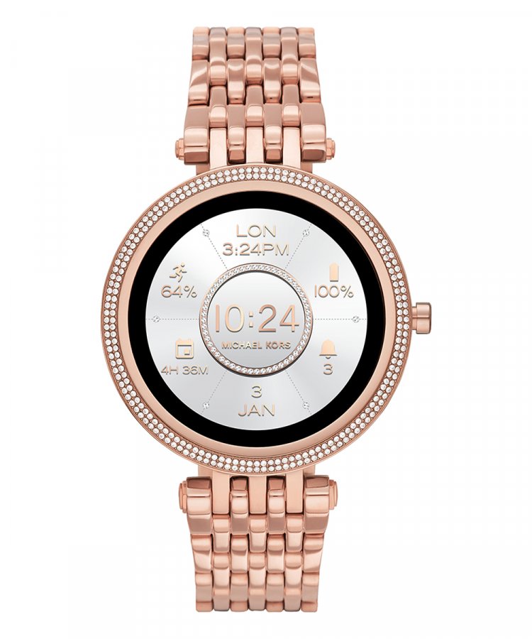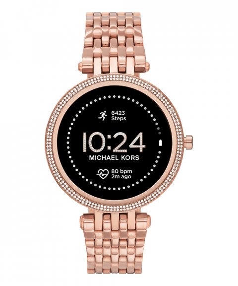 Michael Kors MKT5128. Tamanho do ecrã na diagonal: 3,02 cm (1.19"), Tecnologia de apresentação: AMOLED, Resolução: 390 x 390 pixels. Wi-Fi. Material de banda: Aço inoxidável, Cor da pulseira: Rosa dourado, Dimensões da pulseira: Tamanho único. Michael Kors' 43mm Gen 5E Darci Smartwatch pairs the latest Wear OS by Google technology with glamorous design, featuring a pavé, rose gold-tone topring and matching seven-link stainless steel bracelet. Smartwatches powered with Wear OS by Google are compatible with iPhone® and Android™ phones. Wear OS by Google and other related marks are trademarks of Google LLC. Supported features may vary across platforms and countries.