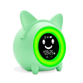 El despertador MADY es el compañero ideal para enseñar a tu hijo a dormir solo. De forma lúdica, el despertador EDEN se comunica con tu hijo gracias al juego de luces, las expresiones faciales y los iconos integrados para ayudarle a encontrar su ritmo de sueño. 30 minutos antes de acostarse, aparece una luz azul para avisarle a su pequeño que es casi la hora de acostarse. Después de 30 minutos, los ojos del despertador EDEN se cierran, el brillo de la pantalla disminuye: es hora de dormir y aparece el ícono de la luna en la pantalla. 30 minutos antes de la hora de despertarse, aparece una luz amarilla, los ojos del despertador EDEN se abren y aparece el icono del sol en la pantalla. Cuando el semáforo se pone en verde, es hora de levantarse y empezar un nuevo día. El despertador EDEN es multifuncional: luz nocturna con 5 colores disponibles y 3 melodías a elegir para ayudar a tu hijo a conciliar el sueño. Los niveles de volumen e intensidad de la pantalla son ajustables. )